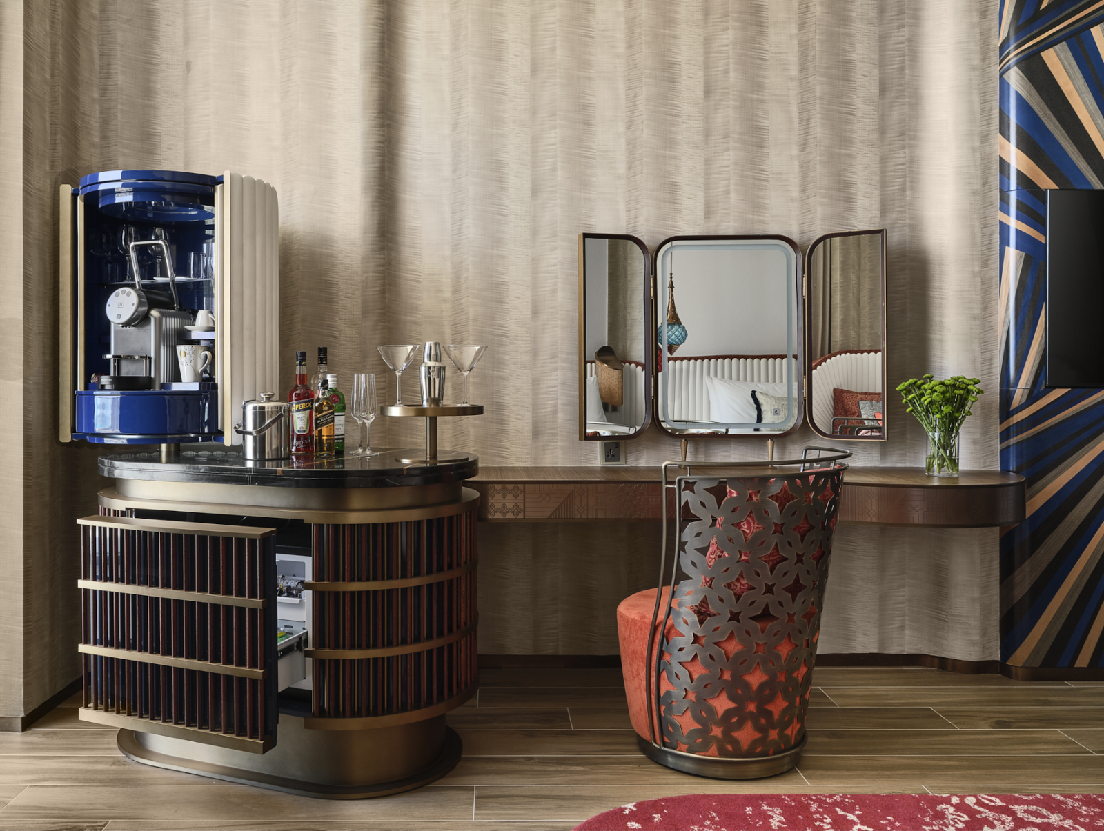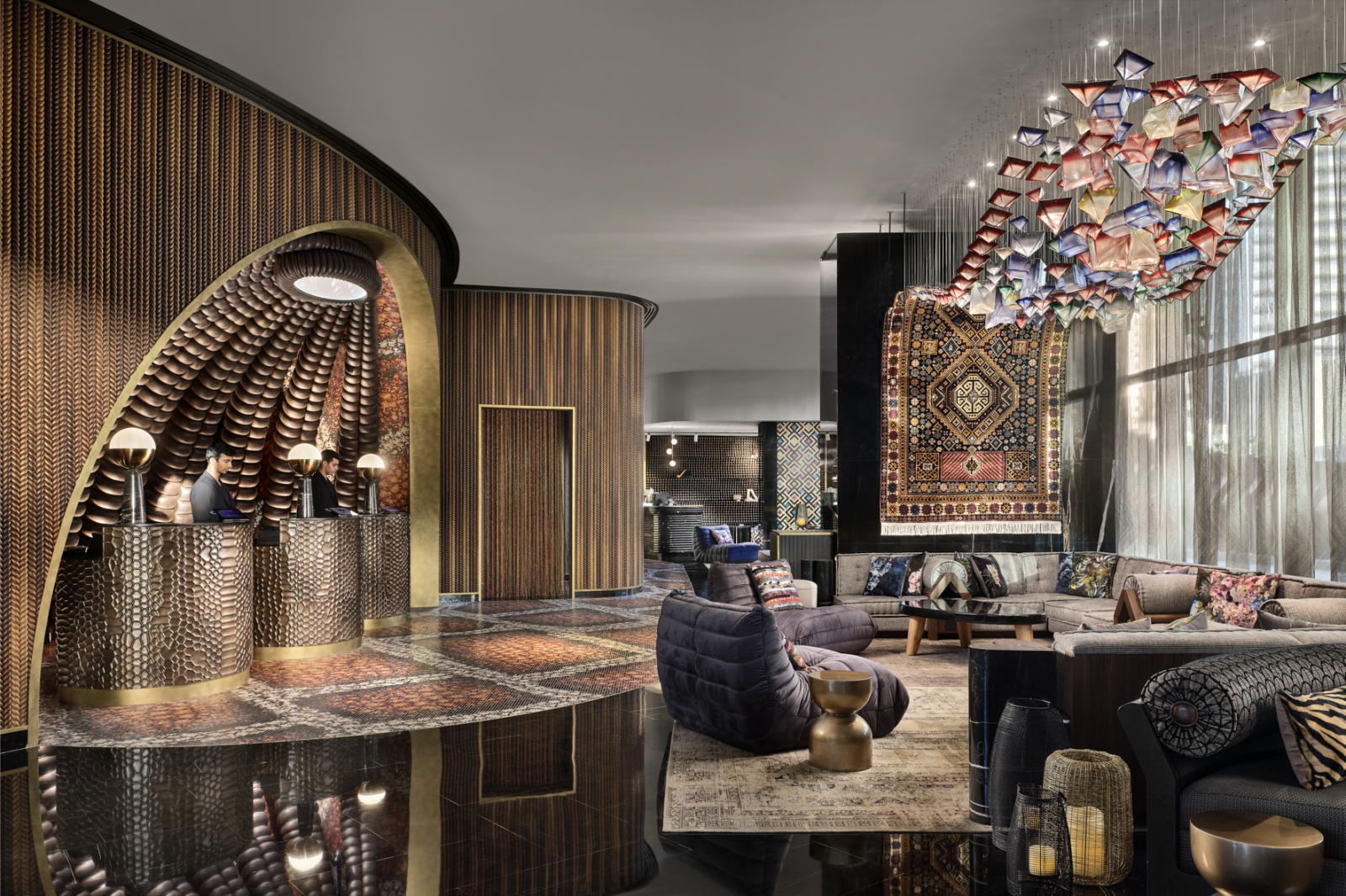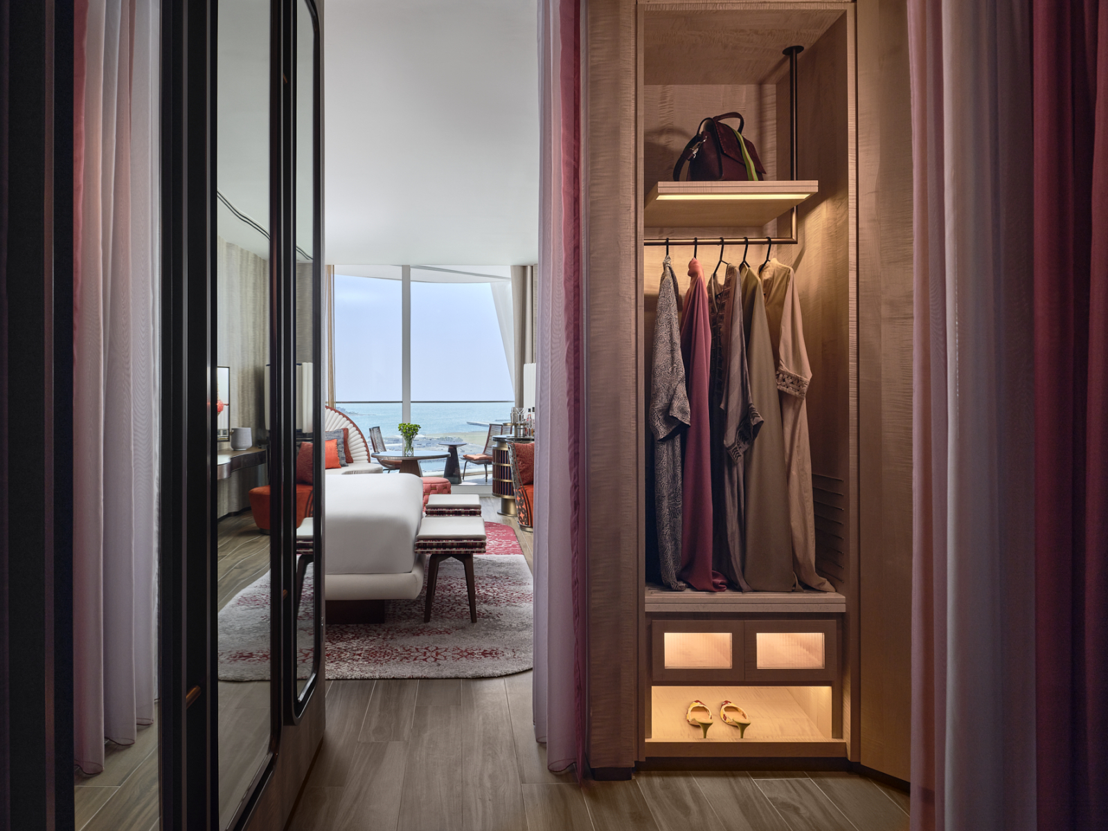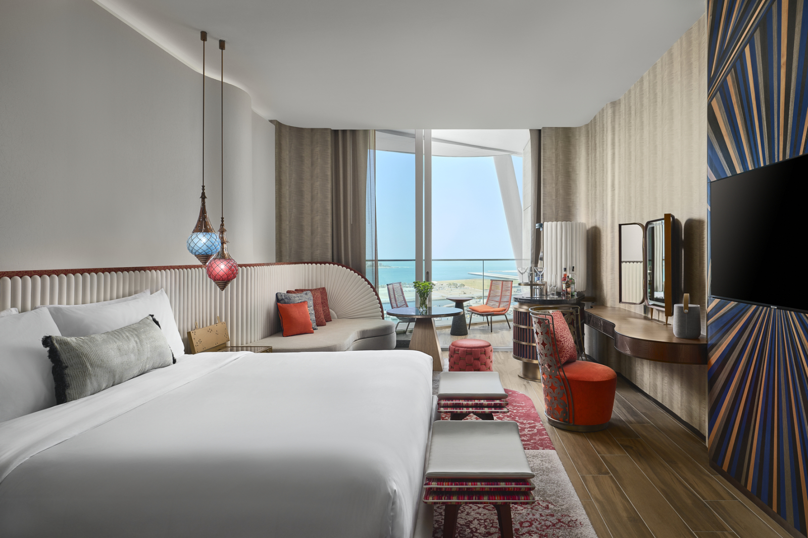 Отель входит в сеть W Hotels корпорации Marriott International и рекомендован путеводителем Forbes Travel Guide. Его 31-этажное здание со сверкающим фасадом и оригинальной архитектурой, спроектированное бюро Aedas Architects, стало узнаваемой частью панорамы побережья. Дизайн интерьеров от студии BLINK Design Group представляет собой современную интерпретацию арабской культуры с использованием декоративных сундуков, шёлковых ширм, мраморной мозаики и марокканских светильников.