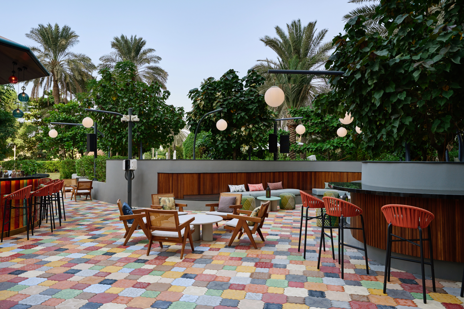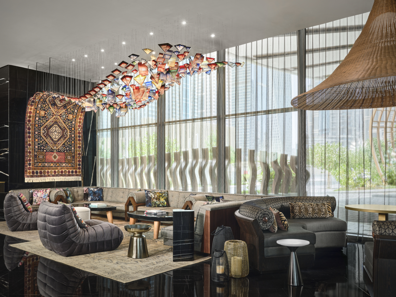 На территории отеля работают восемь ресторанов и баров, включая атмосферный Ginger Moon с инфинити-бассейном и богемной эстетикой. На последнем этаже расположен ночной клуб Attiko с панорамными видами на Дубай. В отеле доступна опция проживания по системе all inclusive.